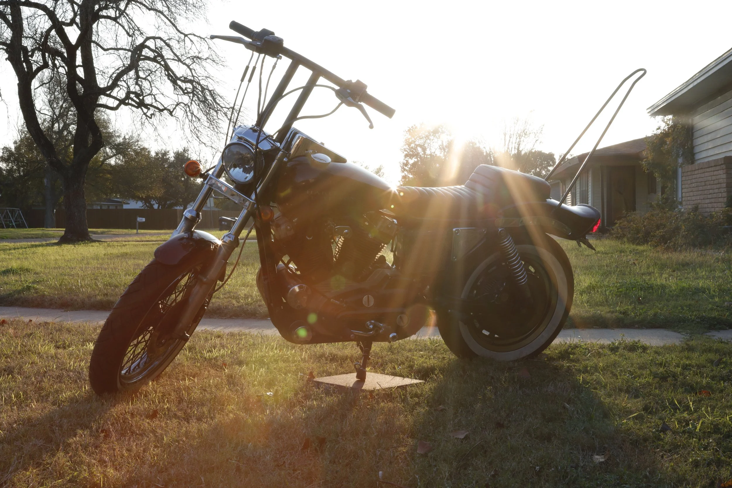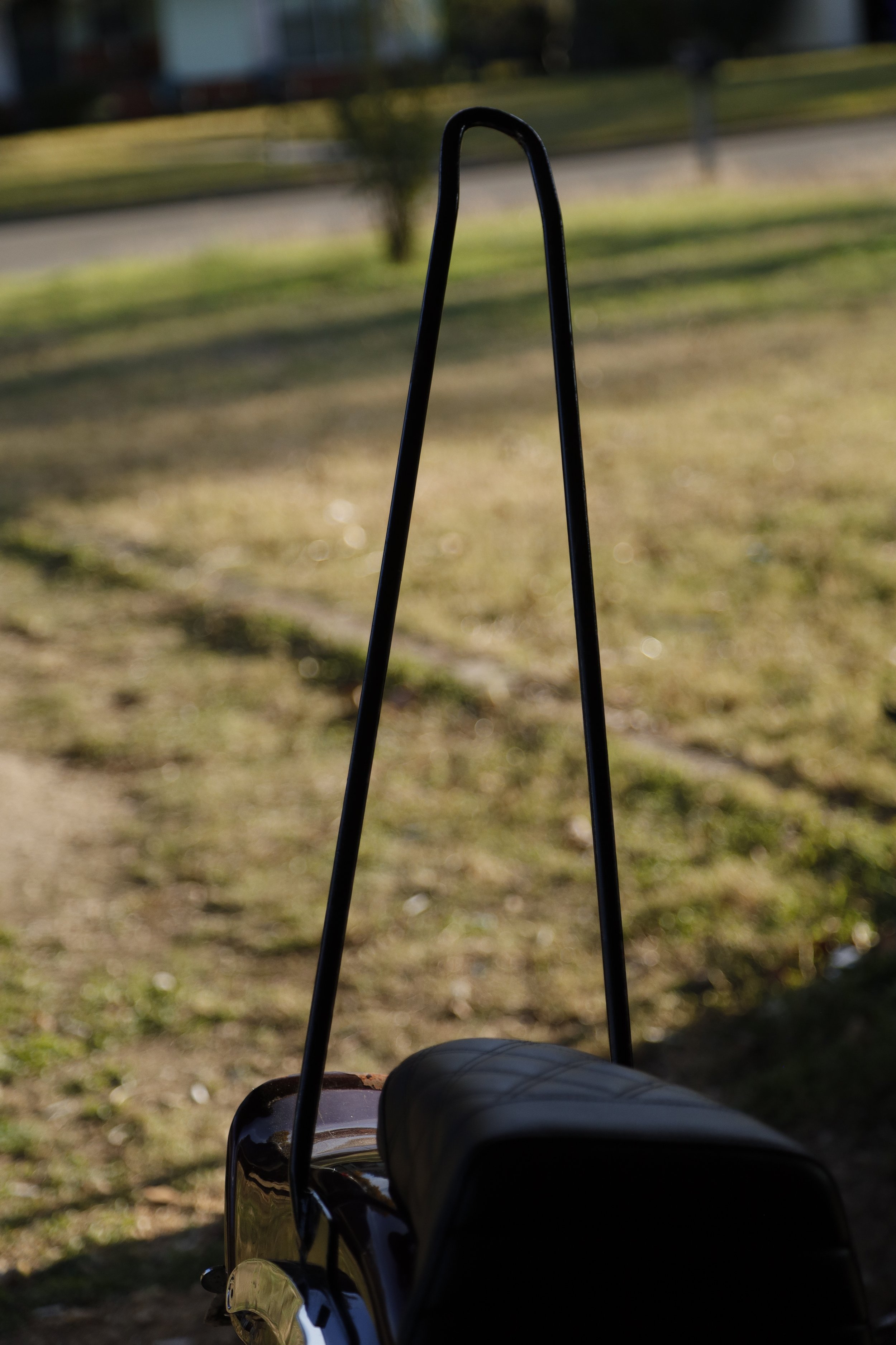 24in tall, bent top, raw mild steel, sissy bar. Perfect for the ultimate chopper look for your swing arm sportster. (Fits 82-93 Sportster)